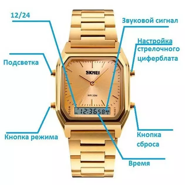 • Циферблат: Смешаный (стрелочный+цифровой)