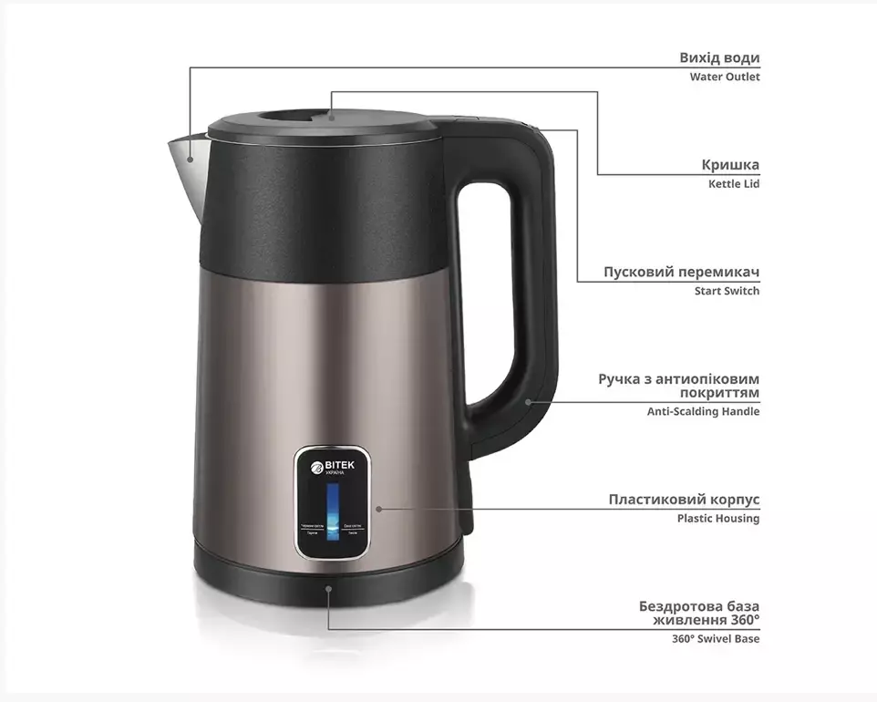 Чайник електричний 2,5л 1800Вт BITEK BT-7955/ 6756 (16)