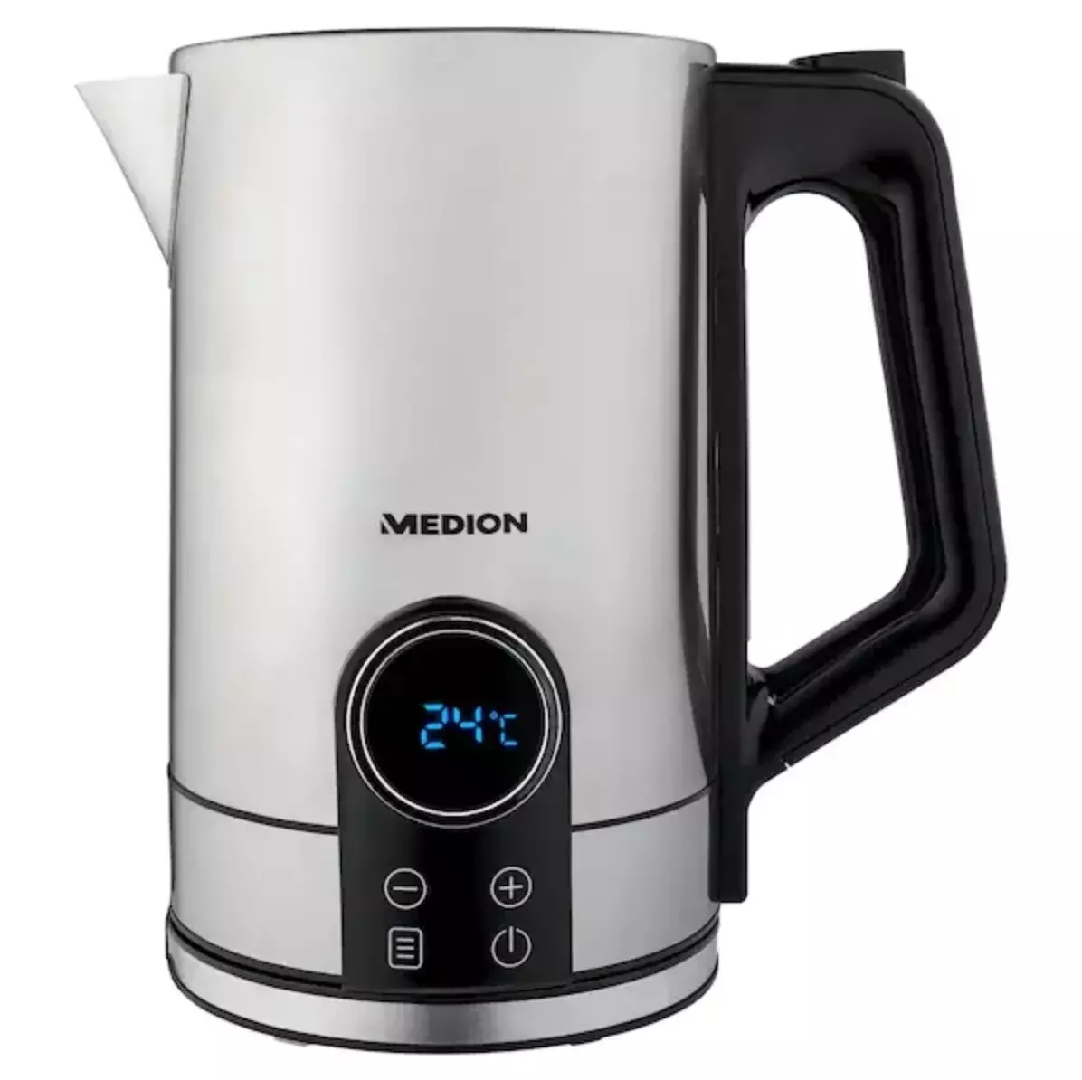 на кухне.Чайник MEDION с цифровым управлением объемом 1,7 литра и