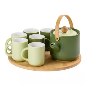 Бамбукова підставка, що обертається, не тільки забезпечує зручний доступ до чашок і чайника, але і вносить в сервіз елемент природної естетики. Бамбук - це екологічний матеріал, який органічно впишеться в будь-який інтер'єр, чи то традиційний, чи сучасний стиль.
