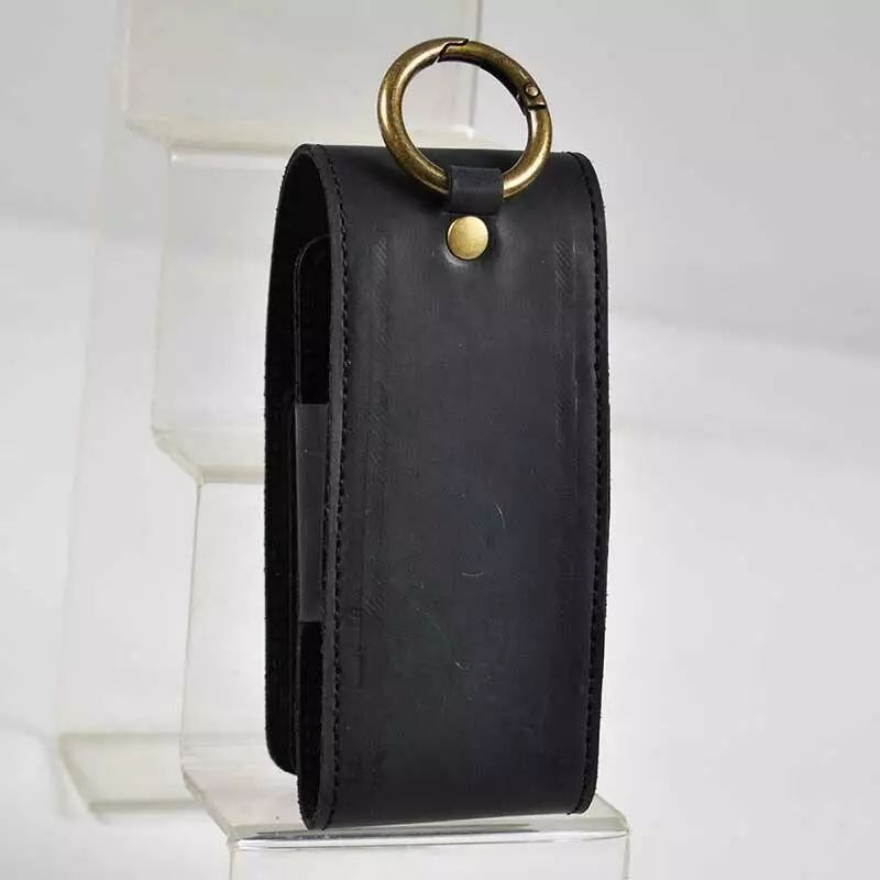 Чохол оснащений кільцем-карабіном, за допомогою якого можна зафіксувати шкіряний виріб на пояс, ручку або ремінь сумки.