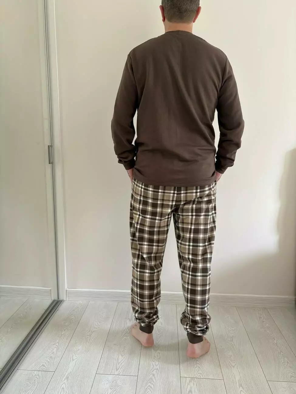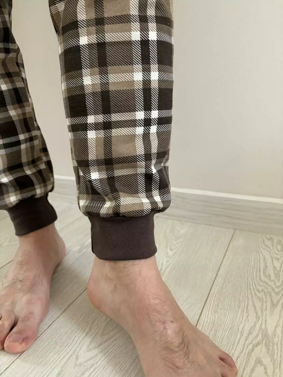 Створи атмосферу зимових свят разом із чоловічою піжамою, що поєднує комфорт, тепло та стиль. Комплект складається з м’якого свитшота шоколадного кольору з начісом та затишних штанів у коричнево-бежеву клітинку. Манжети внизу штанів додають комфорту та допомагають зберігати тепло у найхолодніші вечори. Фірмовий акцент — новорічні ялинки та напис “It is The Season” на свитшоті. Це той самий святковий настрій, що піднімає дух навіть у сірий зимовий день. Піжама виготовлена з утепленого трикотажу з начосом (100% бавовна), який: - дуже м’який на дотик, - чудово утримує тепло, - не перегріває тіло, - вбирає природну вологу і залишає шкіру сухою та комфортною. Штани мають зручну посадку та місткі кишені, роблячи цю модель не лише святковою, а й максимально практичною для щоденного домашнього відпочинку. До цієї піжами є жіноча пара — створіть гармонійний сімейний комплект для зимових вечорів, святкових фото або просто для затишних обіймів удвох під теплим пледом. Ефект тканини: теплий м’який начіс з внутрішньої сторони Як доглядати за виробом: Ручне чи машинне прання при температурі не більше 30 градусів. Перед машинним пранням річ має бути вивернута навиворіт (лицьовою стороною всередину). Можна використовувати будь-які миючі засоби, але краще надати перевагу гелям для прання. Віджимати на мінімальних обертах 400. Сушити виріб необхідно в розправленому вигляді в горизонтальному положенні, далеко від нагрівальних приладів та прямих сонячних променів.