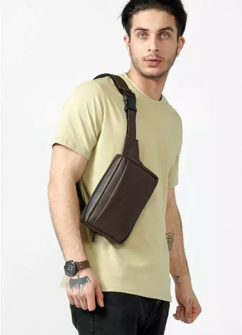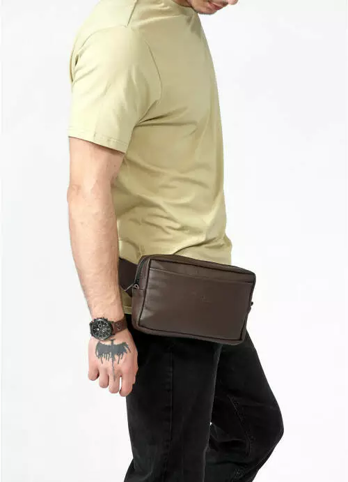 Вместительная и практичная сумка бананка с экокожи -