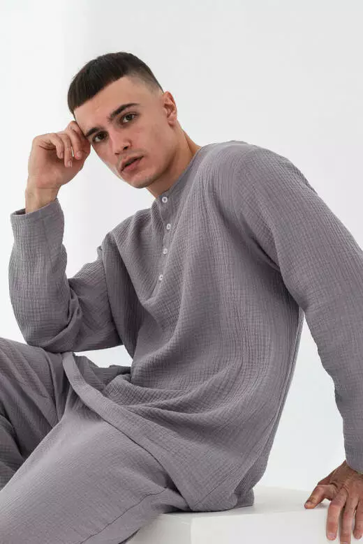 Чоловіча сорочка домашня муслінова з довгим рукавом, сірий