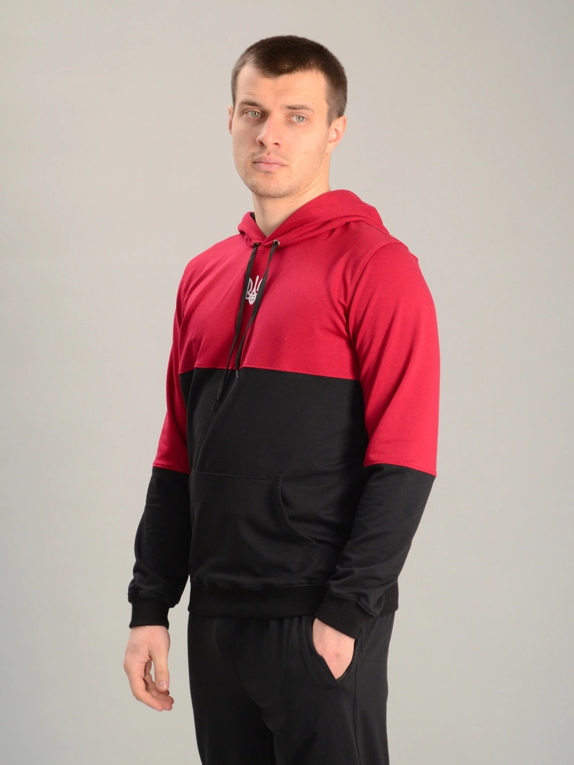 Чоловіча спортивна двоколірна кофта-кенгуру gerb бордово-чорна, Ростовка (4 шт)