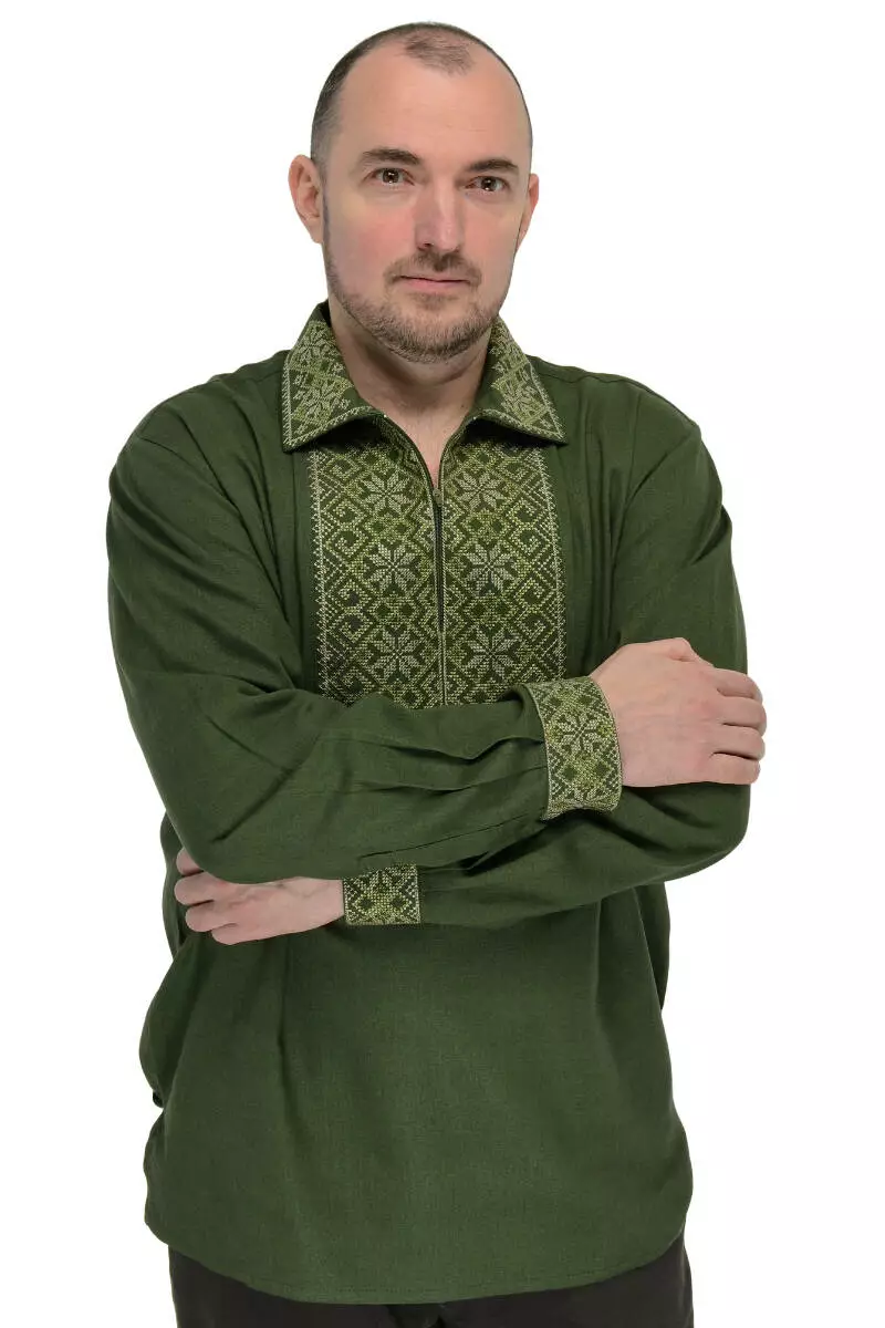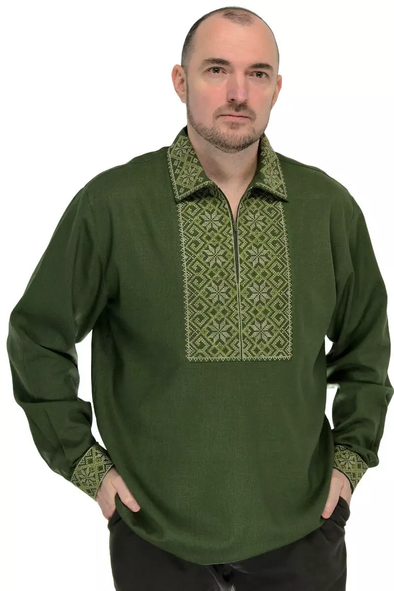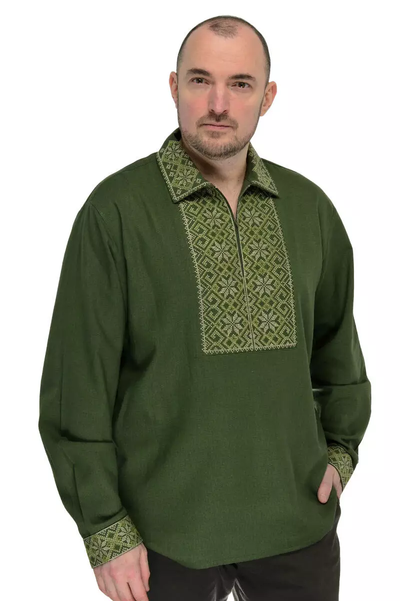 Чоловіча вишиванка з льна (хакі)