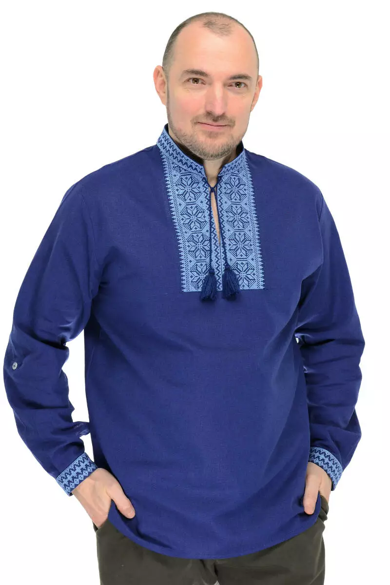 Представлена модель сорочки-вишиванки відрізняється стриманою вишивкою і модним сучасним забарвленням.