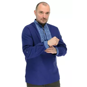 Чоловіча вишиванка з льна Модерн (синій)