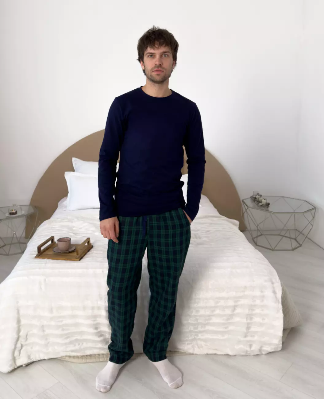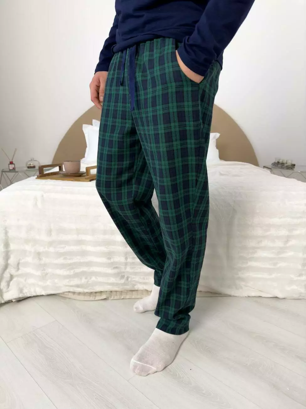 Штани: синьо-зелені з фланелі – теплі, м’які та приємні до тіла. Класичний крій забезпечує комфорт у будь-який час.