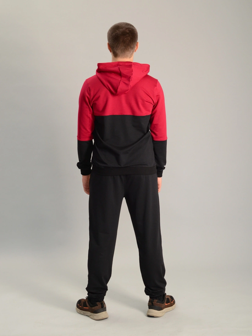 Чоловічий спортивний костюм із кофтою-кенгуру adidas бордово-чорний, Ростовка (4 шт)