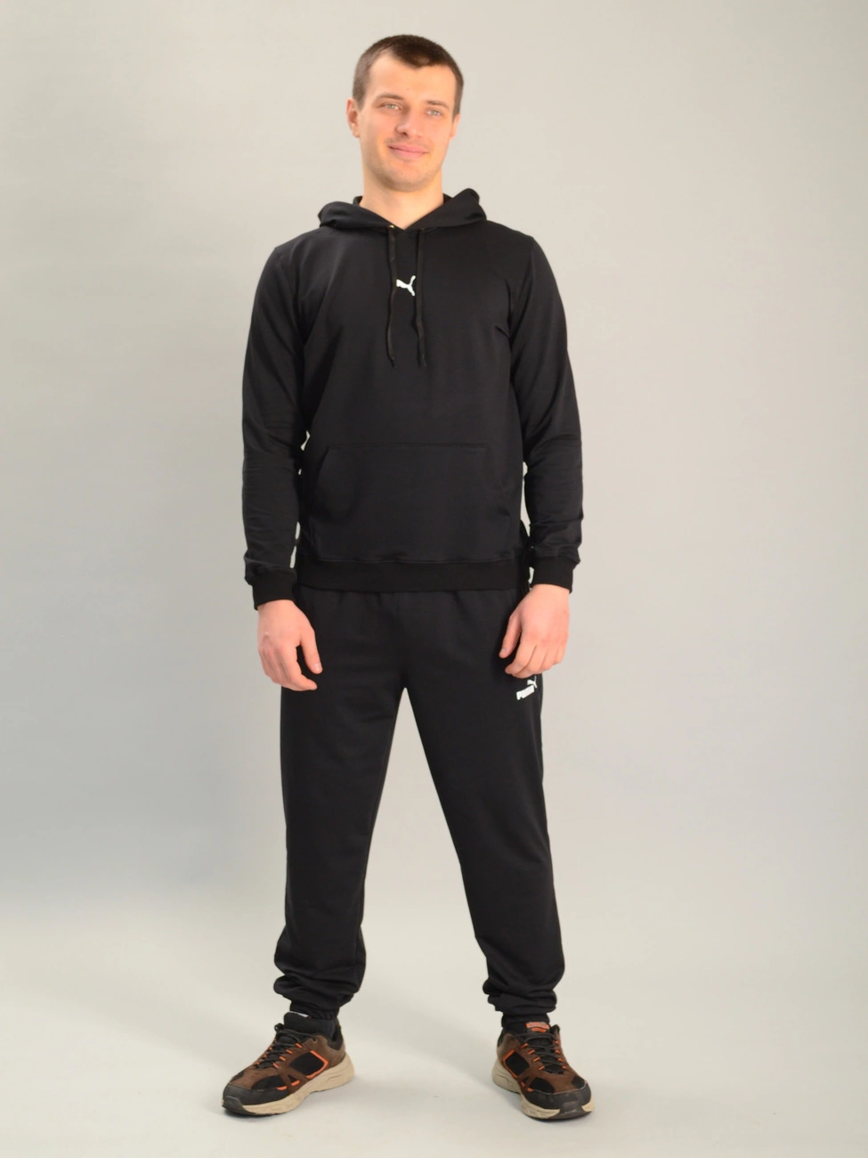 Чоловічий спортивний костюм із кофтою-кенгуру puma чорний, Ростовка (4 шт)
