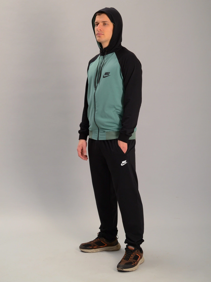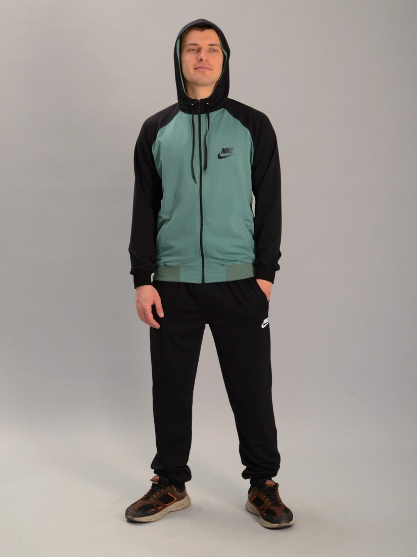 Чоловічий спортивний костюм із кофтою на замку з капюшоном nike м'ятно-чорний, Ростовка (4 шт)