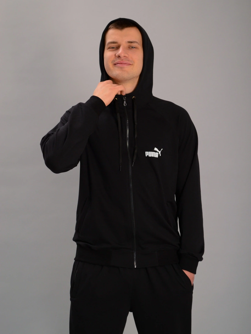 Чоловічий спортивний костюм із кофтою на замку з капюшоном puma чорний (батал), Ростовка (3 шт)