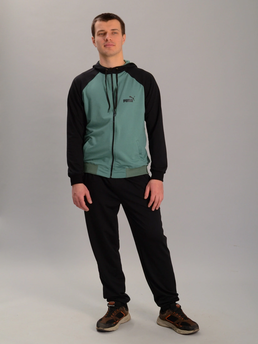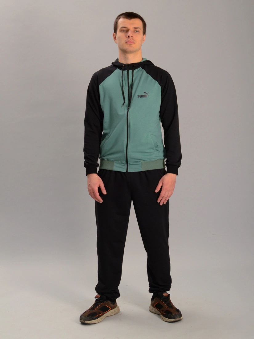 Чоловічий спортивний костюм із кофтою на замку з капюшоном puma м'ятно-чорний, Ростовка (4 шт)
