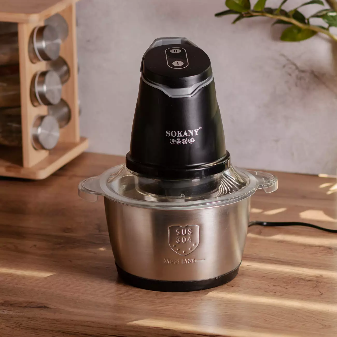 Чоппер SOKANY SK-06028 – універсальне рішення для повсякденного використання. У комплект входять 2 чаші, призначені для виконання різних кухонних завдань: