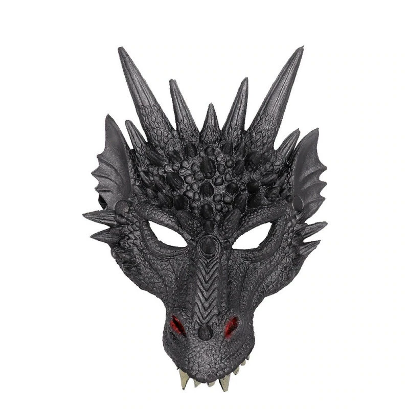 Чорна маска дракона RESTEQ. Маска дракон з поліуретанової піни. Маска Dragon чорного кольору