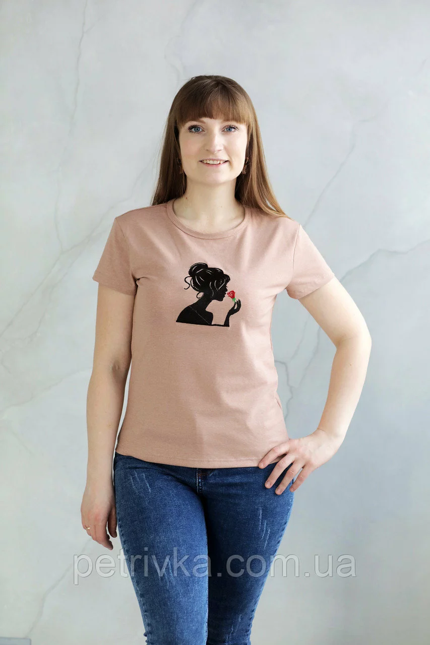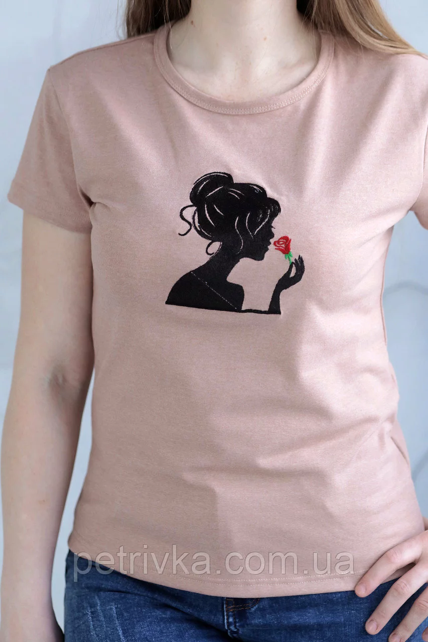 Жіноча біла футболка в стилі CASUAL, з вишитим принтом "Жіноча