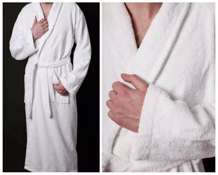 Благодаря структуре банный халат имеет блеск, быстро впитывает