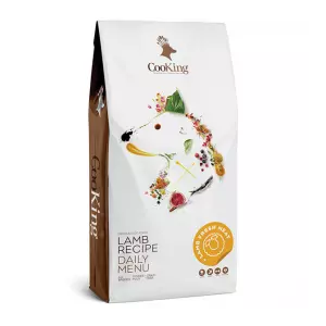 Сухий корм CooKing беззернова формула з свіжим м'ясом ЯГНЯТИ Повнораціонний збалансований беззерновий сухий корм для дорослих собак розроблений на основі свіжого м’яса ягняти – цінного високозасвоюваного джерела білку, бобових, зелені та овочів з правильною пропорцією білків, вуглеводів та овочів для підтримки здоров’я Вашого улюбленця. Склад: Свіже м’ясо ягнятини (не менше 25%), свіже куряче м’ясо (мінімум 20%), бобові, жир домашньої птиці, пивні дріжджі, гідролізований курячий білок, риб’ячий жир, овочі (цикорій, морква, зелена квасоля, кольрабі), мінеральні речовини, екстракт Юкки Шидігера, яблучна клітковина, хондропротекторний комплекс (глюкозамін гідрохлорид, хондроїтин сульфат, МСМ, екстракт зелених мідій (Perna canaliculus)), манно-олігосахариди, фрукто-олігосахариди, таурин, рослини (календула, шавлія, пажитник, кріп, чебрець, шипшина), пребіотики, екстракти (червоних плодів, цитрусових, насіння розторопші, насіння зеленого чаю, м'яти, розмарину), натуральні антиоксиданти, живі пробіотики (E. faecium). Аналітичний склад: Сирий білок: 26 % Сирий жир: 16 % Сира клітковина: 2 % Зола: 7 % Кальцій: 1,4 % Фосфор: 1,2 % Омега 3: 0,37 % Омега 6: 1,73 % Хондроїтин: 765 мг/кг Глюкозамін: 1,240 мг/кг Амінокислоти: Таурин: 650 мг/кг