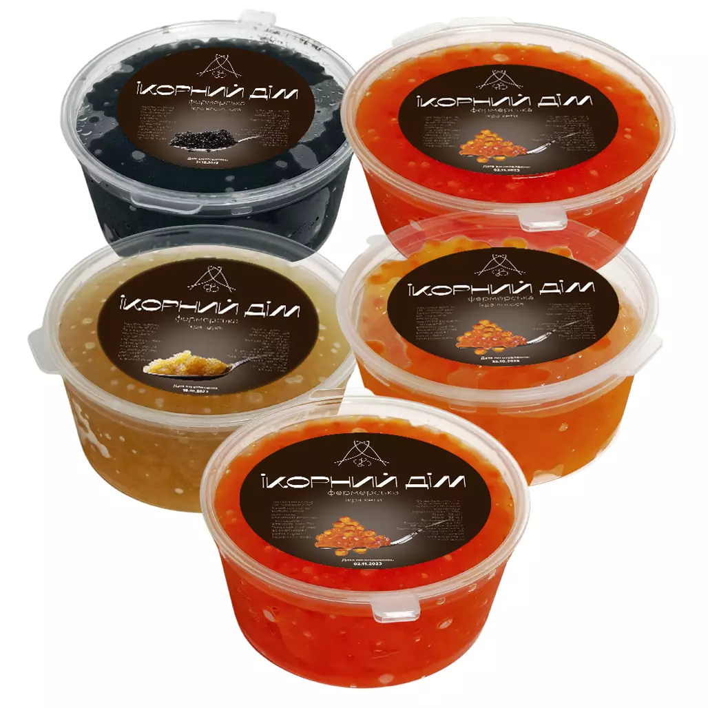 Дегустационный набор Ікорний Дім Premium из пяти видов икры 5 × 50 г ( икра лосось, кета, горбуша, щука,