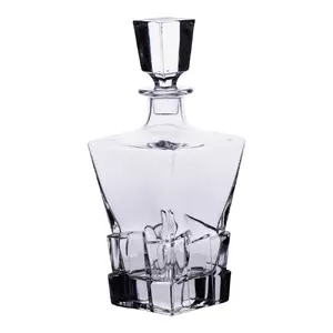 Особливу увагу привертає декоративне тиснення в нижній частині корпусу, стилізоване під кубики льоду. Цей елемент не лише виконує естетичну функцію, але й підсилює оптичний ефект гри світла у склі, що робить декантер помітним елементом на столі. Завдяки поєднанню функціональності та оригінального зовнішнього вигляду він легко вписується в різні інтер’єри — як у домашньому використанні, так і в умовах сервірування в закладах харчування.
