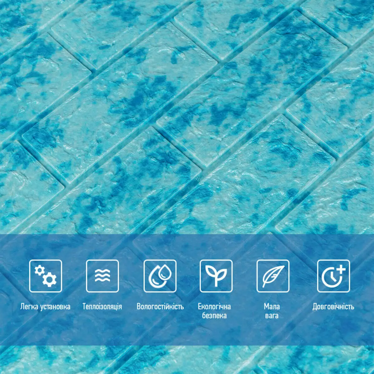 Декоративна 3D панель самоклейка під цеглу Блакитний