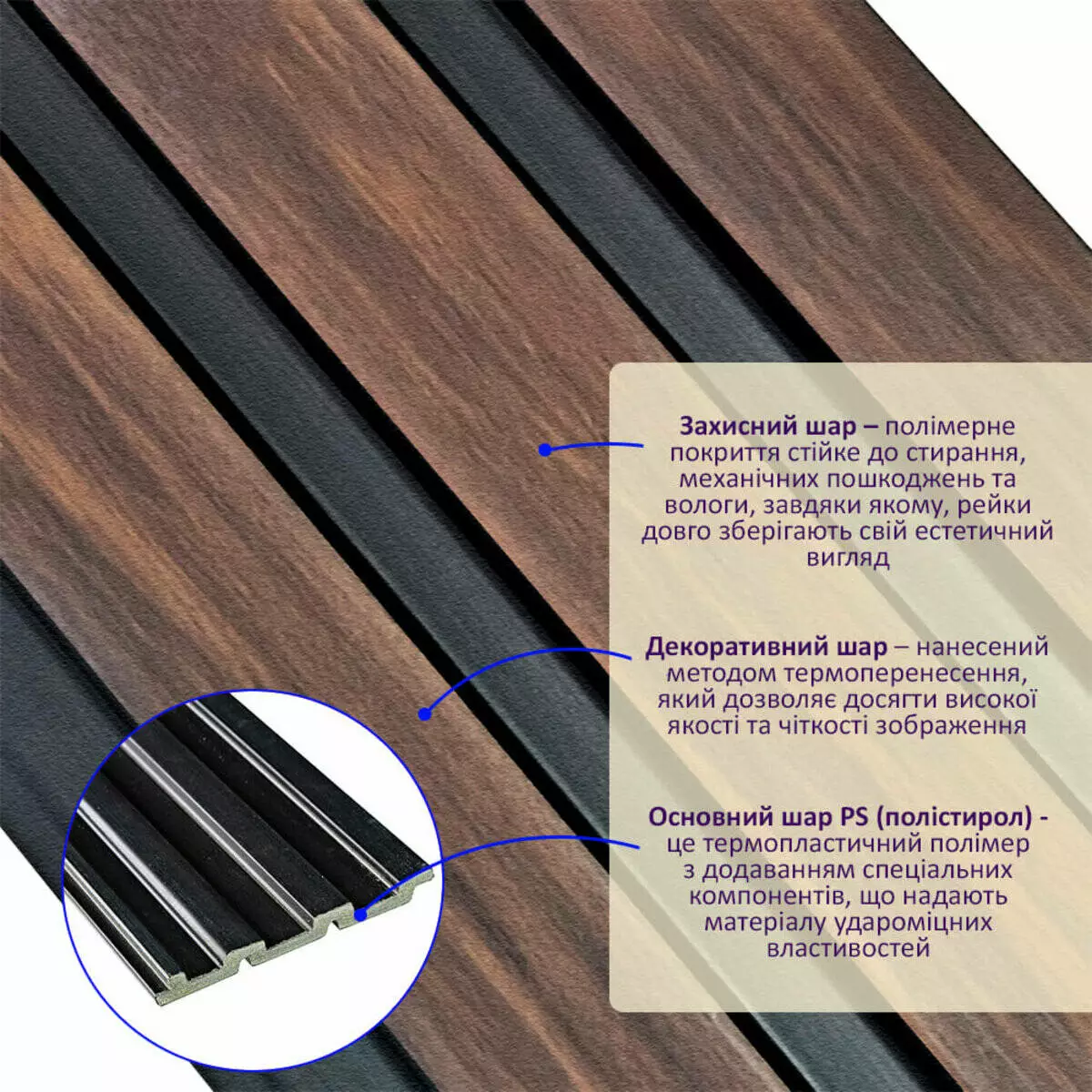 Рейка декоративна PS 2900х120х12мм Темний горіх SW-00001745