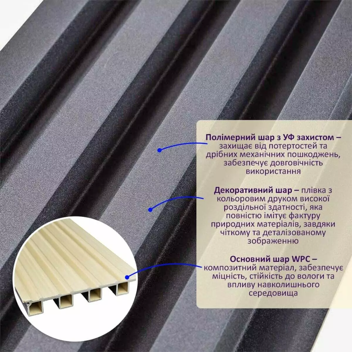 Основний шар WPC: є композитним матеріалом, який поєднує в собі
