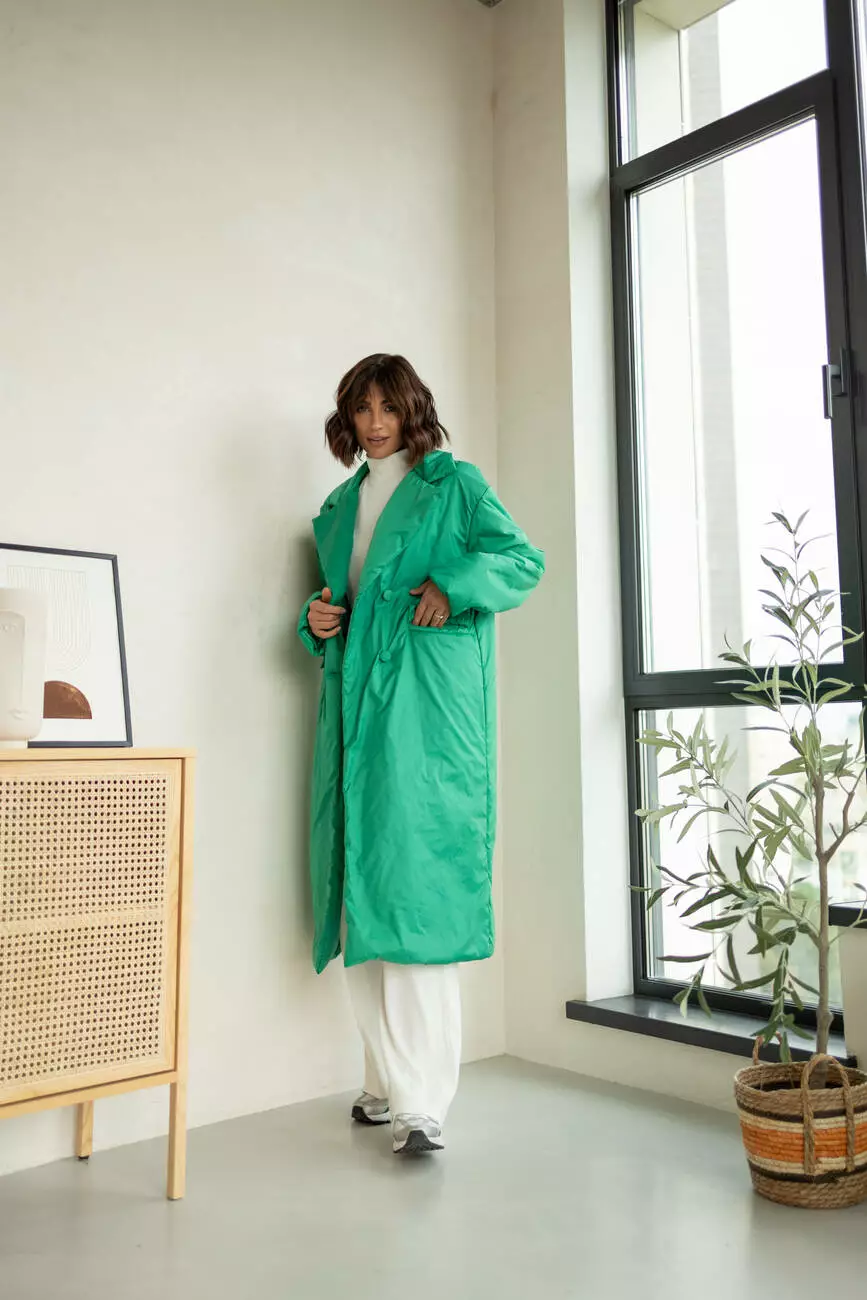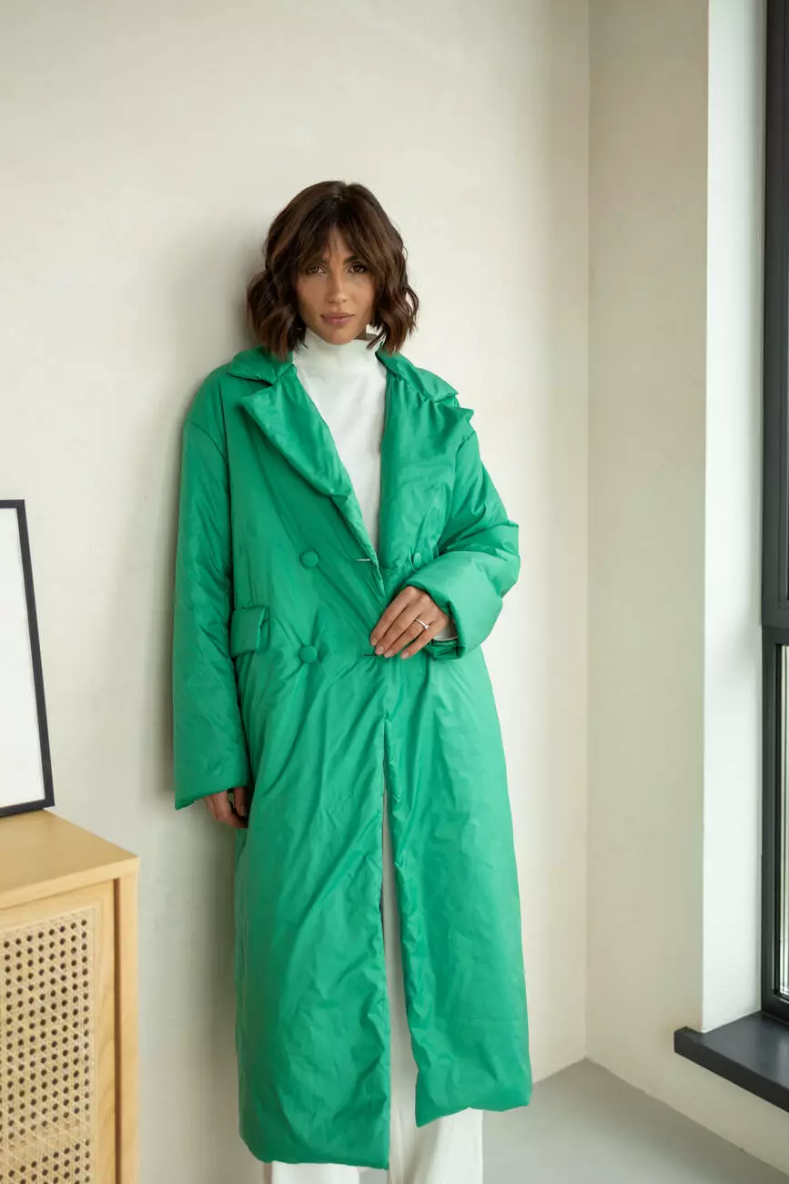 Демісезонне двобортне жіноче пальто MONRO з плащової тканини наповнювач силікон 80 колір трава