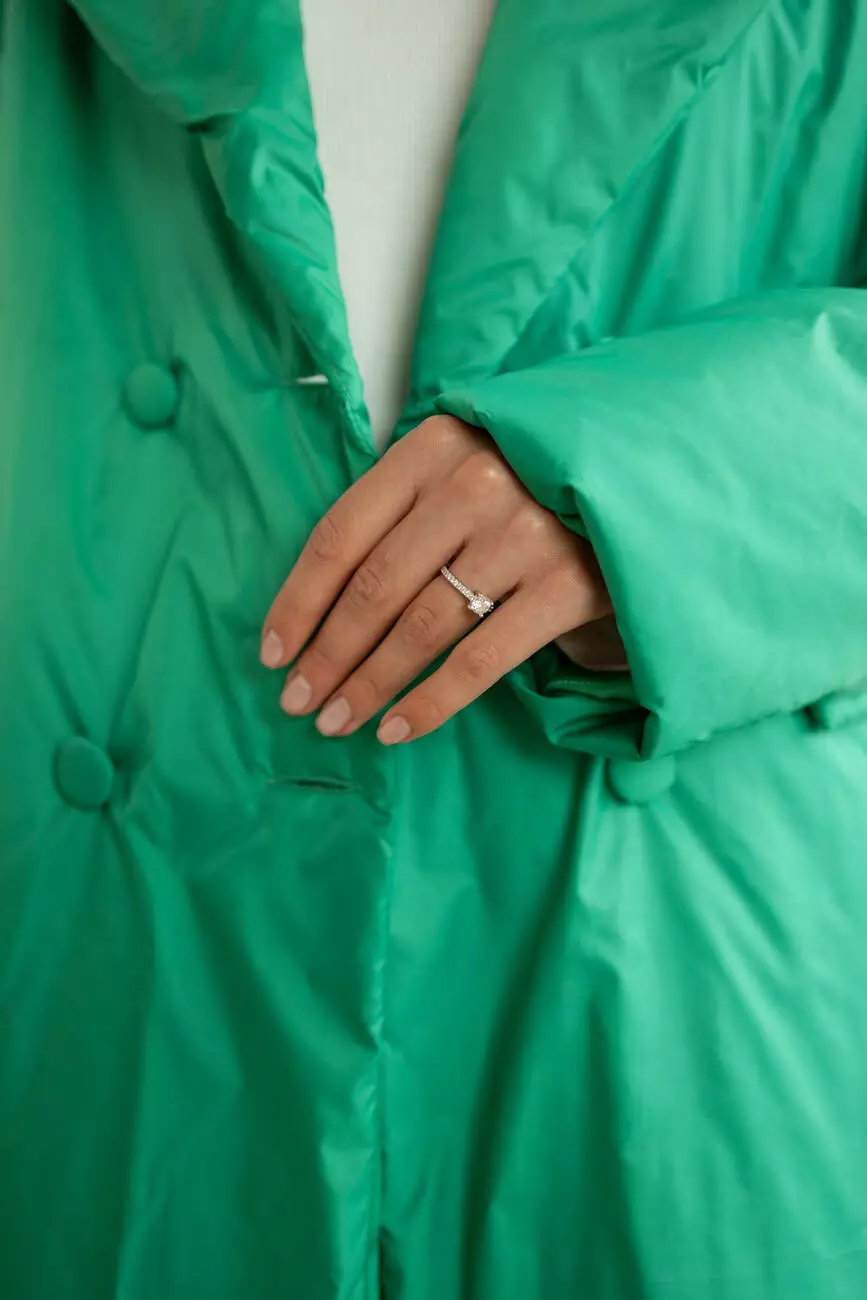 Відшивається на тонкому утеплювачі, який ефективно зігріває і при цьому надає трендового об'єму, пальто легке та тепле, практично невагоме.