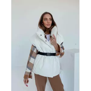 Демісезонний трендовий жилет Desing з екошкіри утеплювач силікон 200 білого кольору