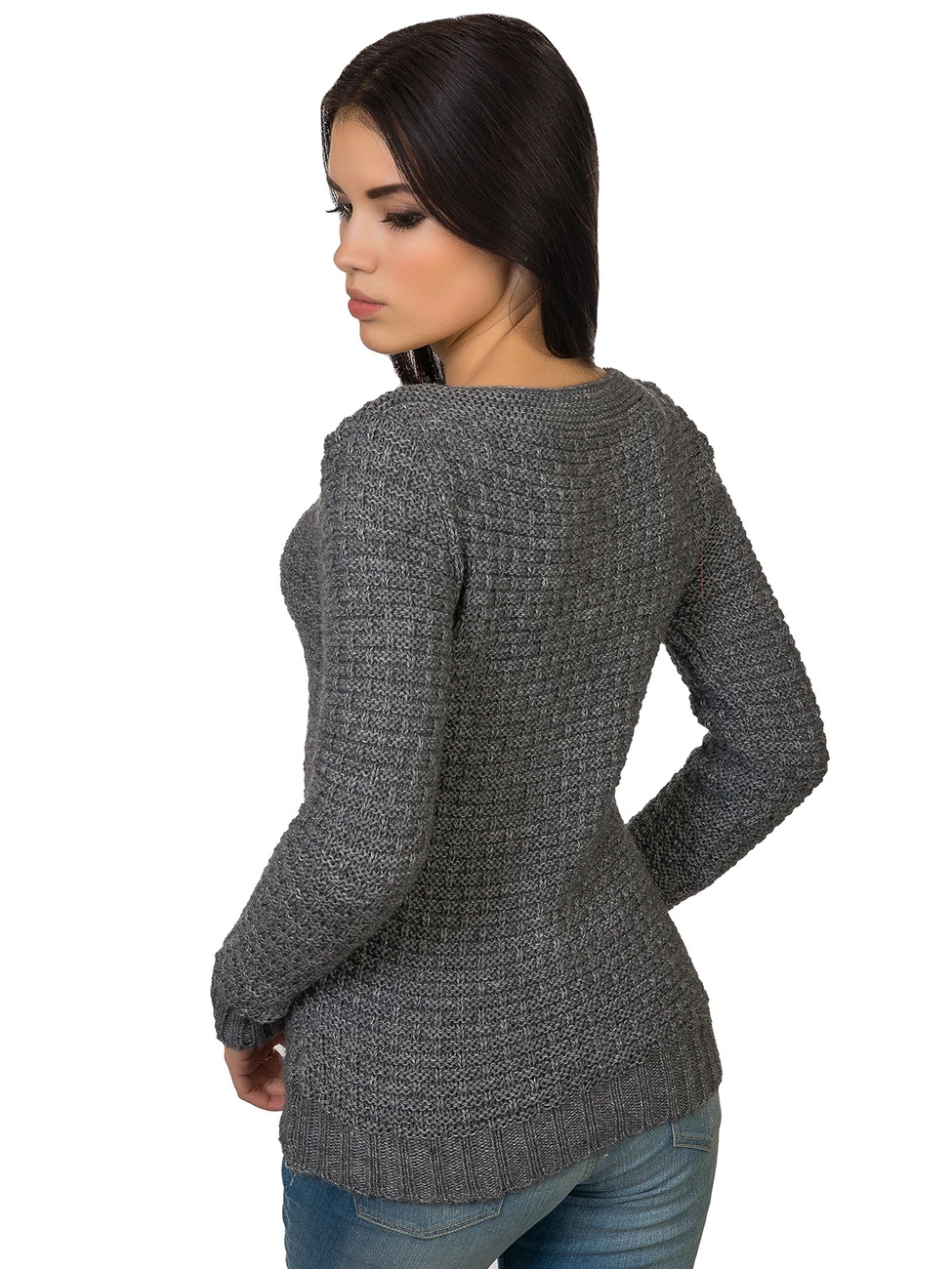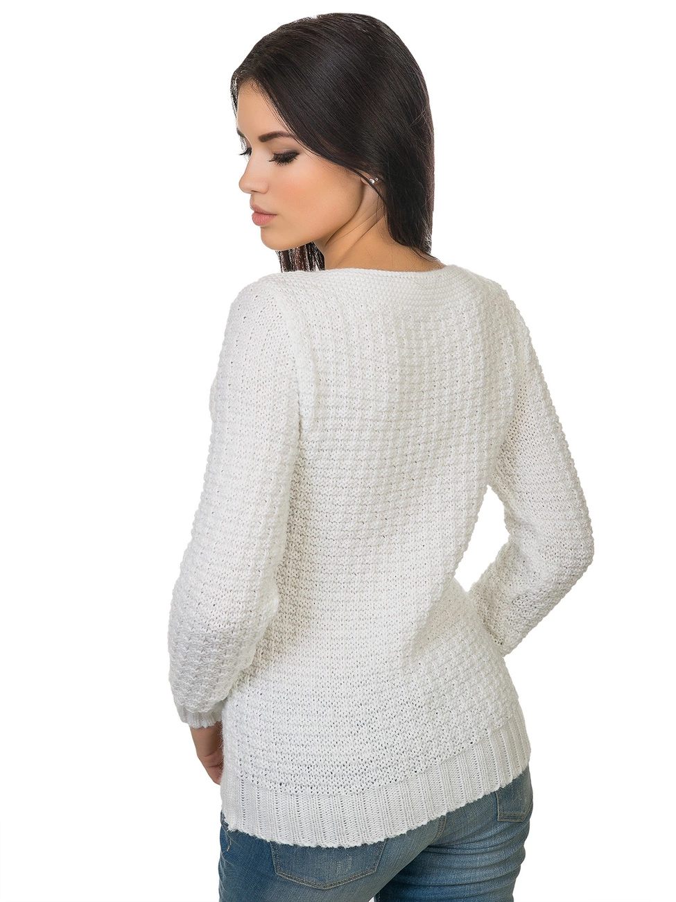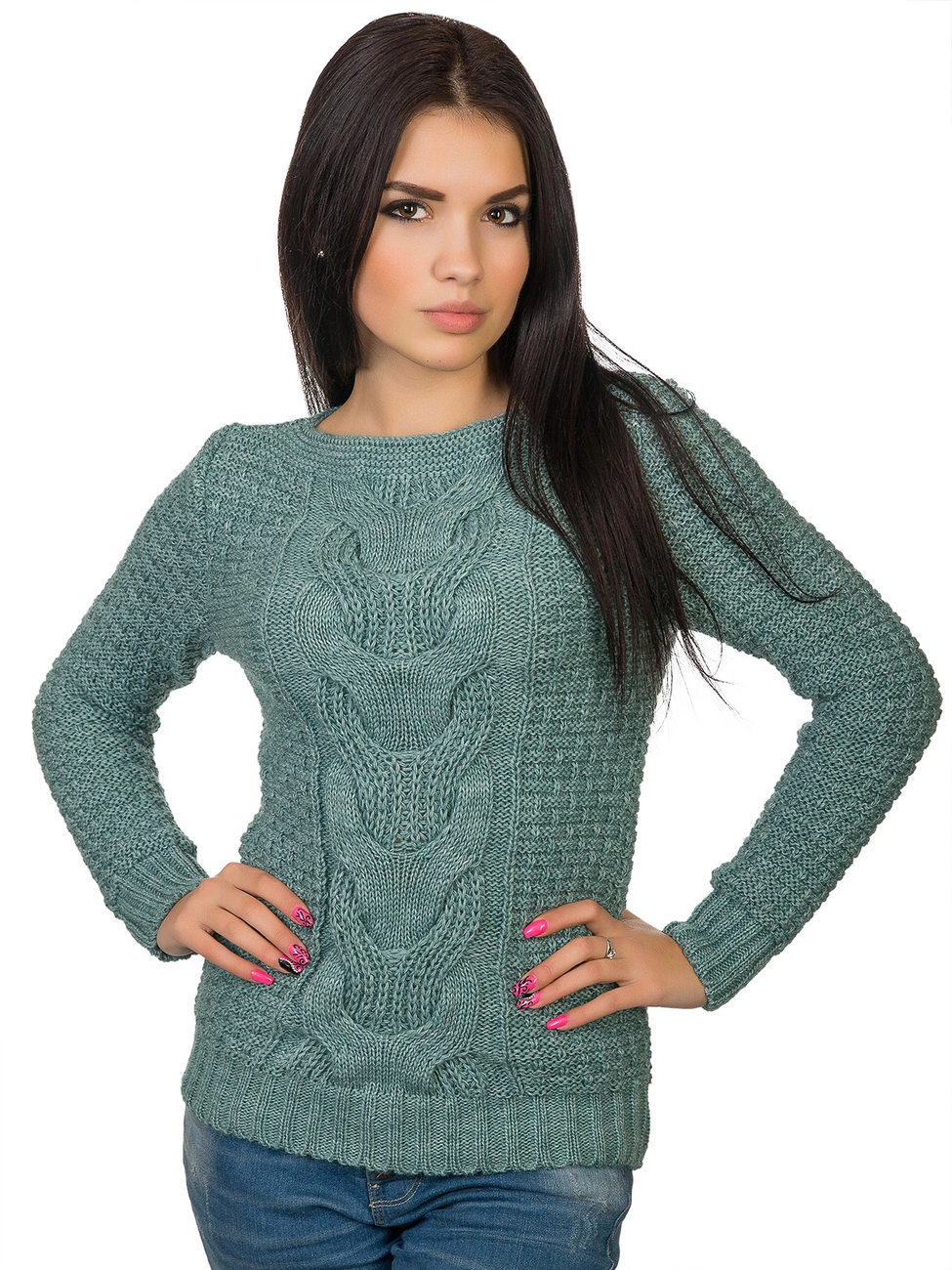 украшенный фигурной вязкой. Длинный рукав и низ изделия выполнены