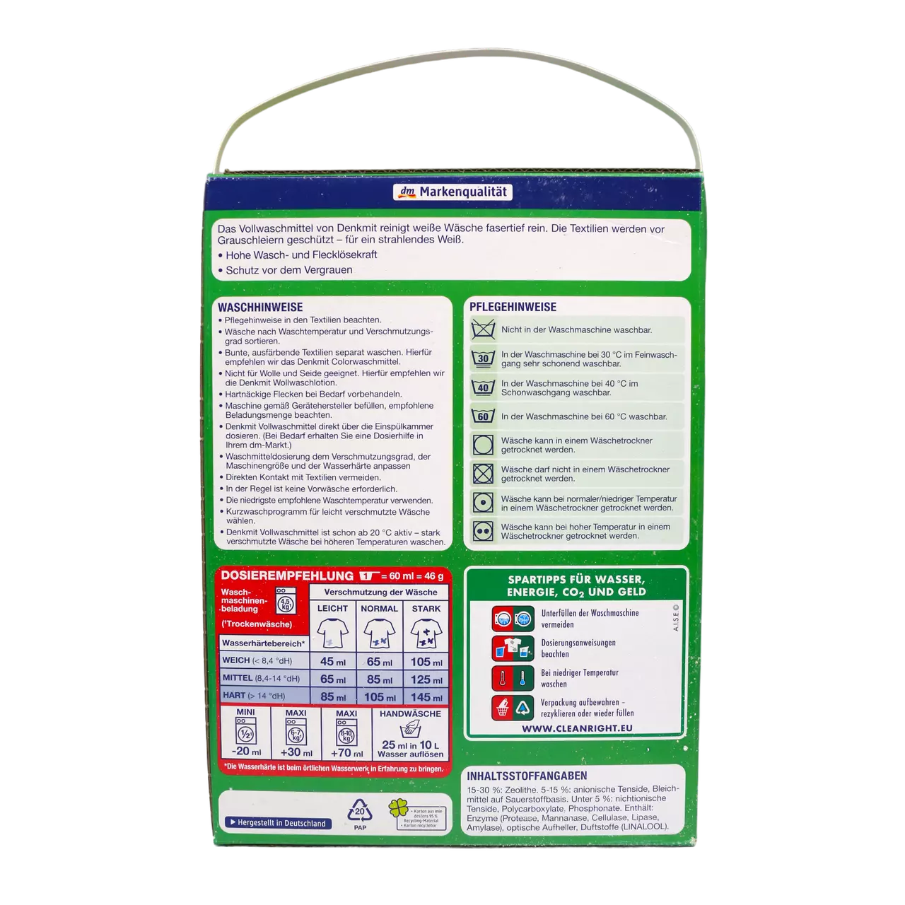 Порошок для прання білих речей Denkmit об'єм 5,2 кг забезпечує