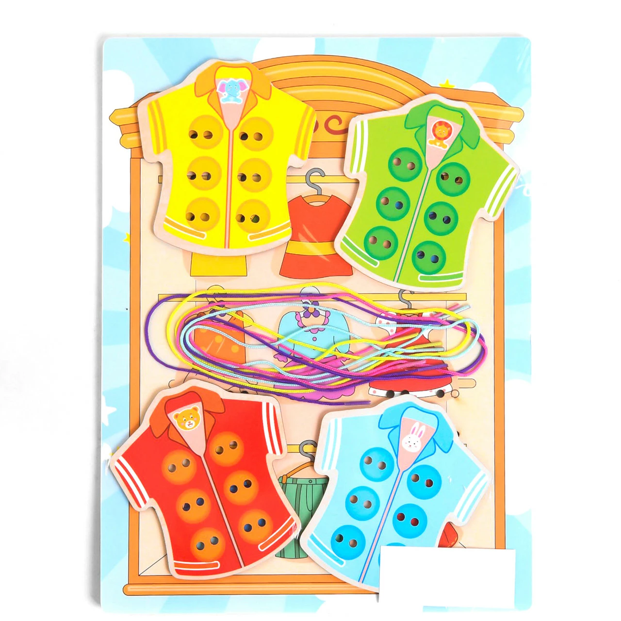 4 разноцветных шнурка. Материал: дерево, текстиль.