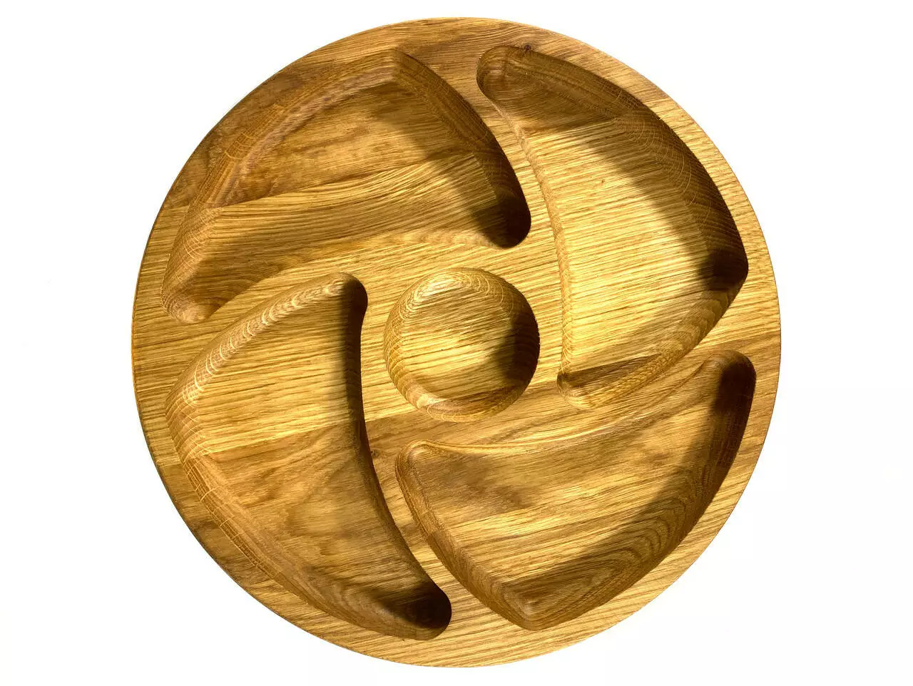 Каждая тарелка изготовлена из цельного дерева толщиной 2 см и