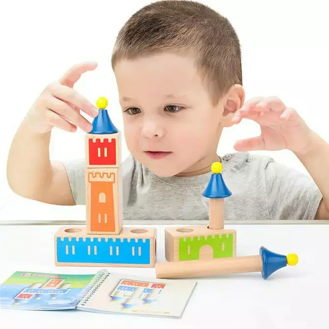 Деревянный конструктор Монтессори "Замок с башнями" на 9 элементов