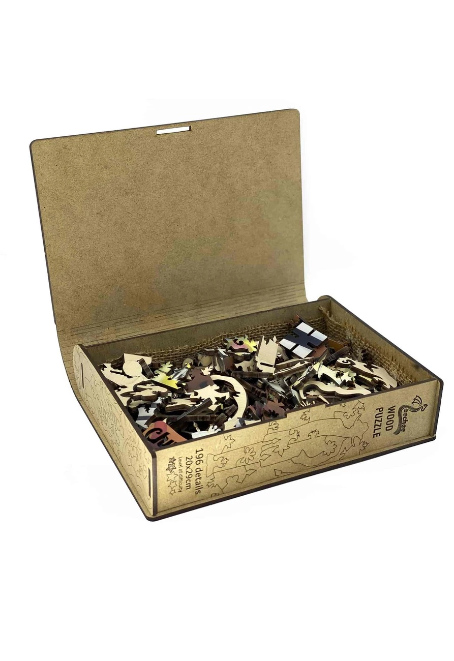с деревянными пазлами, которые превратятся после сборки в эффектный