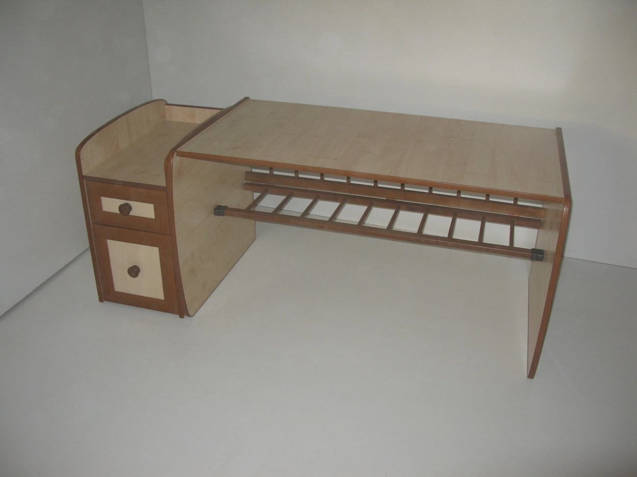 Ліжечко має відкидну боковину, підшипник, трансформується в комод, підросткове ліжко і стіл. Колір: лісвовий горіх МДФ-фасад клен танзау)