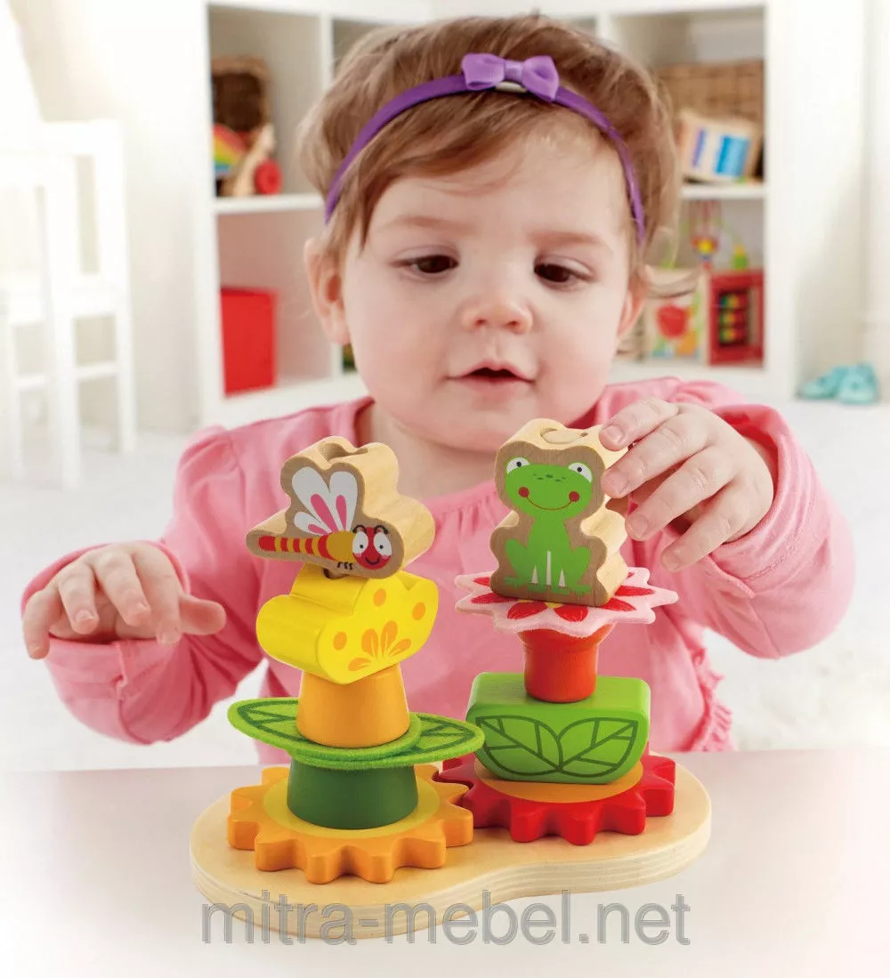 пчелка. Малышу нужно собрать для них эти цветочки. Детали пирамидки