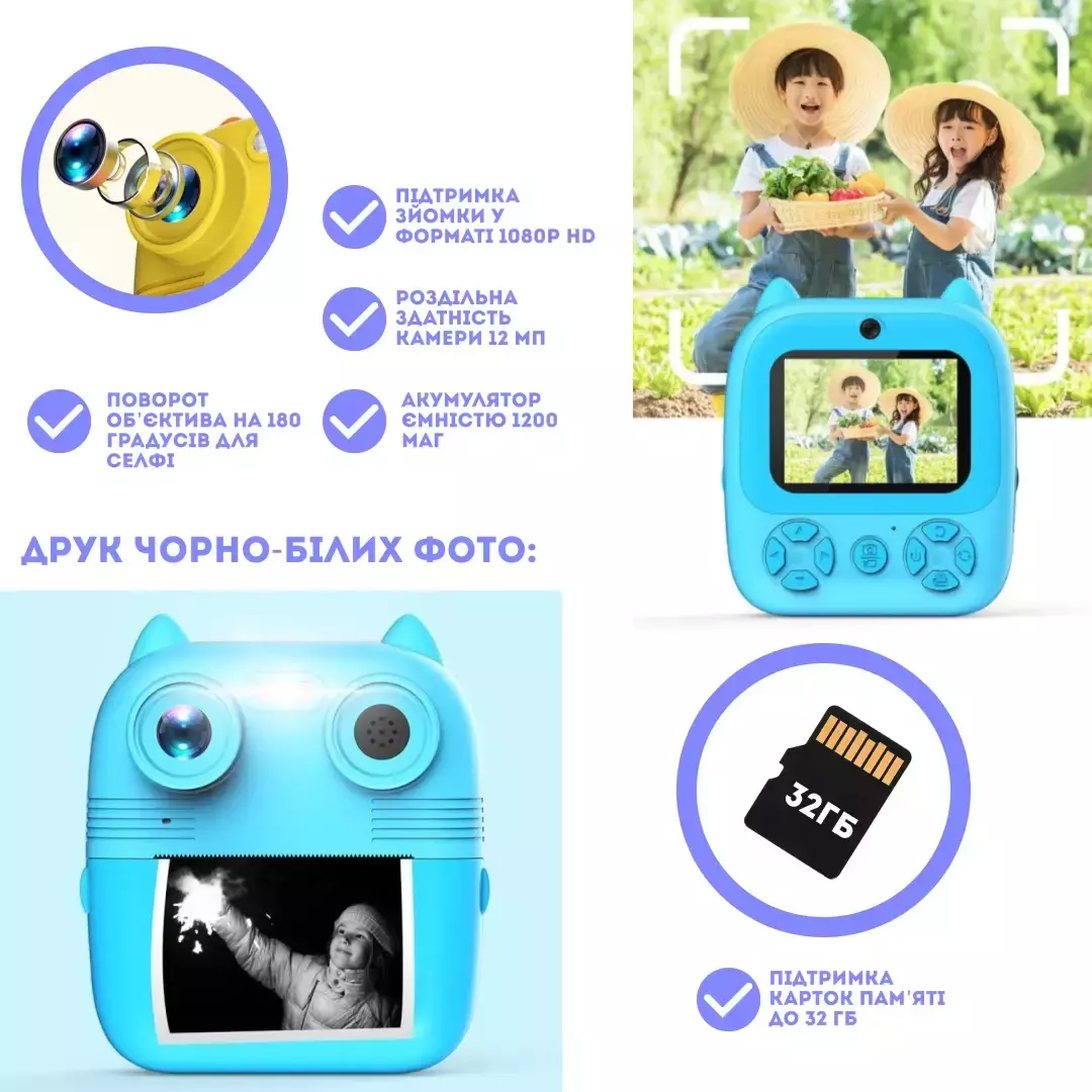 Детская камера 1080P HD (12 МП) с функцией печати —