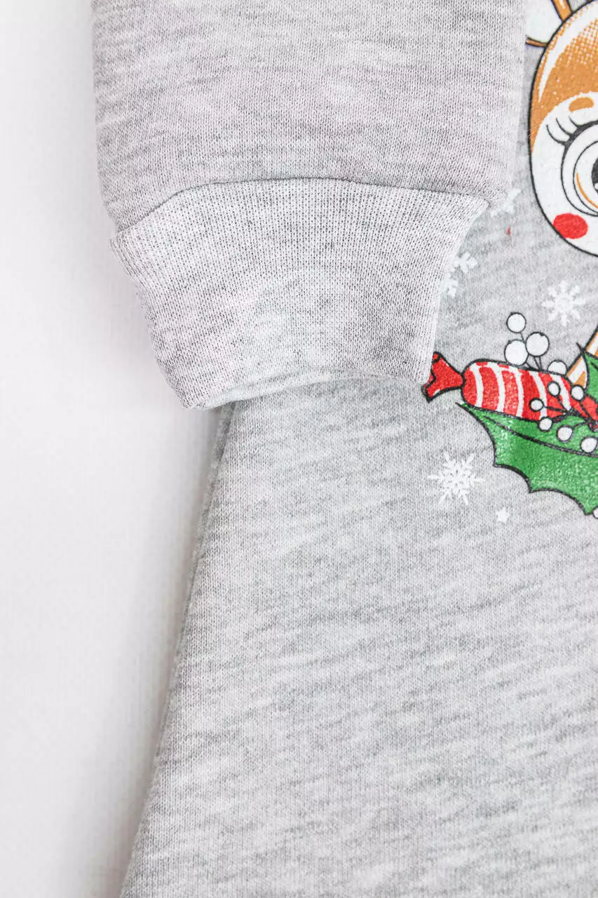 на ножках - трикотажный манжет. Украшен новогодним принтом.