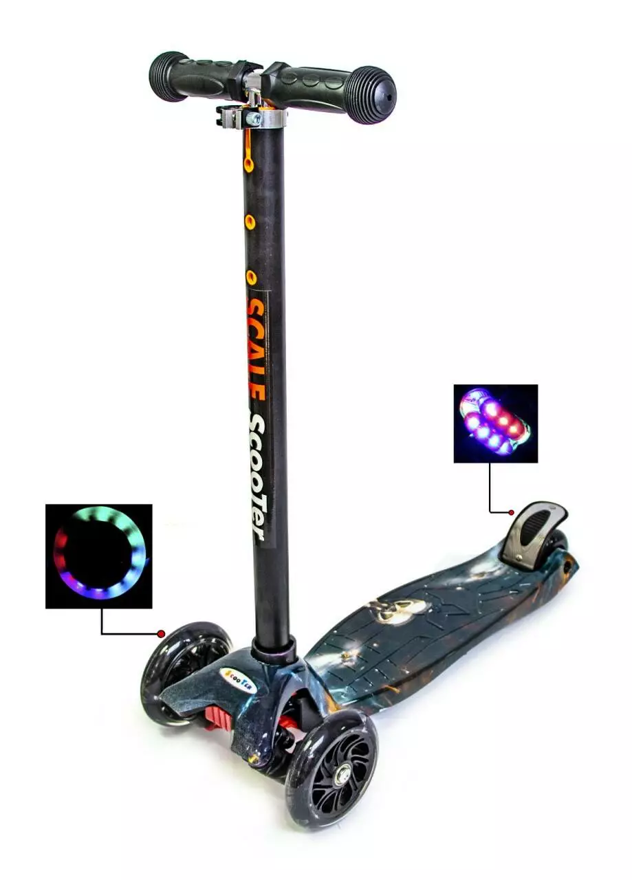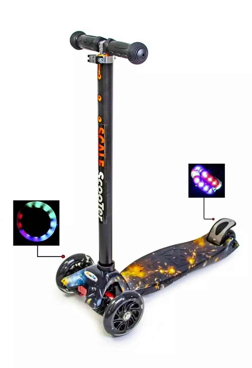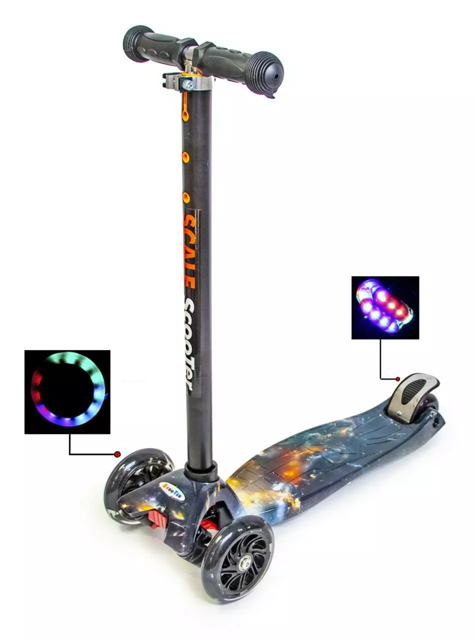 <p>Самокаты c рисунками <strong>MAXI. Планета </strong>со светящимися колесами в интернет-магазине Sportdrive.com.ua.</p><br /> <p>Самокат <strong>Maxi</strong> - легкий в управлении, маневренный, устойчивый. Он позволит ребёнку с радостью наслаждаться быстрой ездой.Конструкция разработана специально для детей от 3-6 лет и до 60 кг.Все колеса при катании светятся!</p><br /> <p><strong>Характеристики:</strong></p><br /> <ul><br /> <li>Марка: Maxi.</li><br /> <li>Возрастная группа: для детей от 3 до 6 лет.</li><br /> <li>Материал рамы: алюминий.</li><br /> <li>Материал платформы: прочный пластик с антискользящим покрытием.</li><br /> <li>Тормоз: ножной,задний.</li><br /> <li>Длина самоката 55 см, длина платформы 32 см, ширина 13 см.</li><br /> <li>Рулевая стойка: от 73 до 82 см, съемная.</li><br /> <li>Количество колес: 4 (2 -спереди, и 2 совмещённых сзади).</li><br /> <li>Рекомендуемая макс.нагрузка - до 60 кг.</li><br /> <li>Диаметр и материал колес: передние - 120*30 мм, задние - 70*25 мм, полиуретан со светодиодами.</li><br /> <li>Вес самоката: 2,5 кг</li><br /> </ul><br />