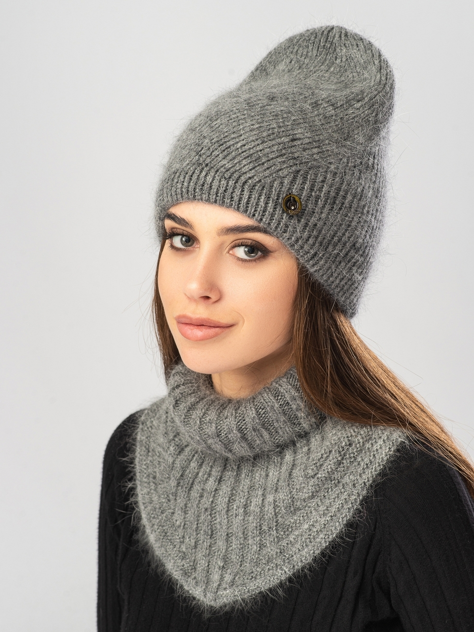 Женская шапка Диагональ с шерстью ангоры. Эта модель удобно сидит на голове и внутри полностью утеплена флисом.