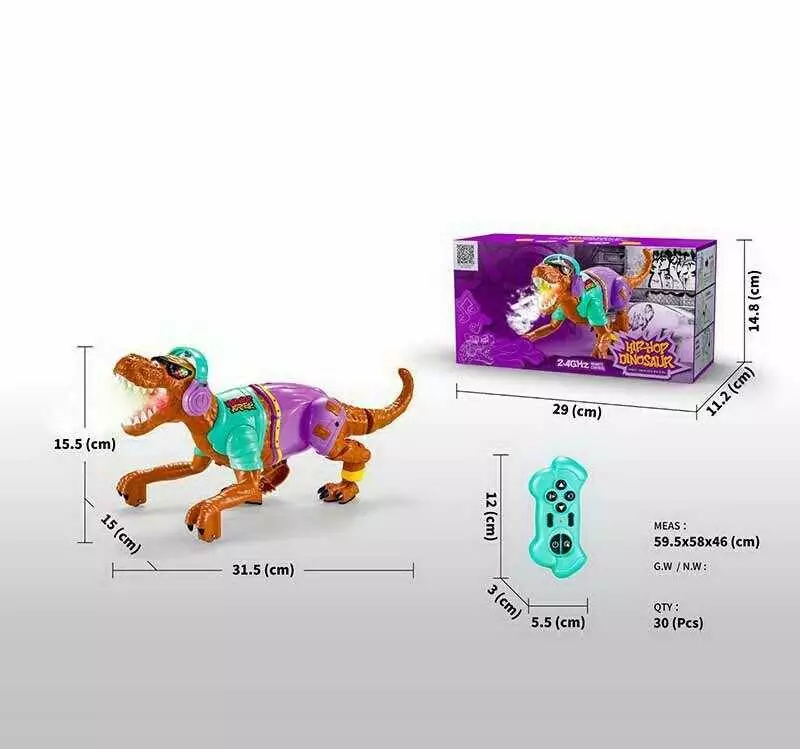 Динозавр на радіокеруванні 3731-1 AD (30) на батарейках, звук, підсвічування, мелодії, пульт 2.4 Гц, парогенератор, бігає, в коробці