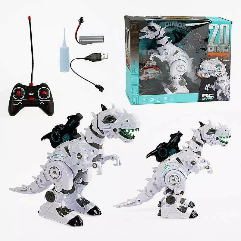 Динозавр на радіокеруванні 585-20 A (18/2) акумулятор 3.7 V, пульт на батарейках, звуки, підсвічування, генерує пару, в коробці