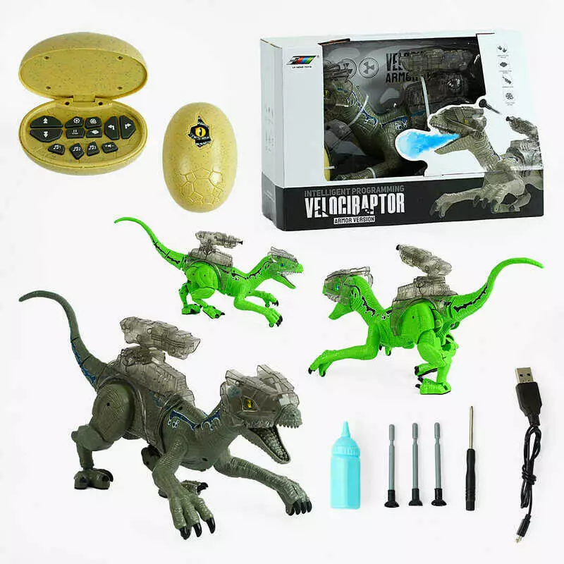 Динозавр на радіокеруванні K 35 (8) звук, підсвічування, пускає пару, ходить, гарчить, стріляє, 3 мелодії, пульт керування, USB-кабель, в коробці