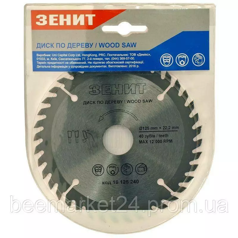 Диск пиляльний для дерева Зеніт 40 зубців призначений для роботи з