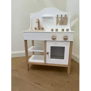 Подаруйте своїй маленькій господині справжню радість з дитячою дерев'яною кухнею Happy wood! Ця чарівна біла кухня - ідеальний подарунок для дівчаток, які мріють стати шеф-кухарями.