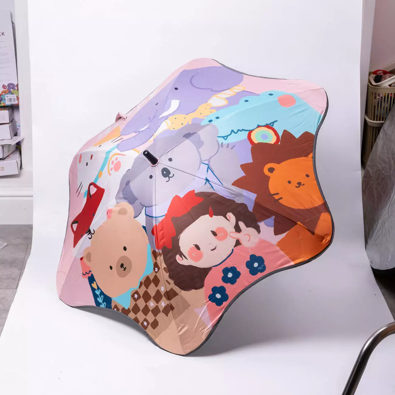 Дитяча парасоля-тростина поєднує зручність у використанні та яскравий дизайн, що одразу привертає увагу. Вона оснащена механічною системою складання, яка дозволяє легко відкривати й закривати парасолю. Купол виконаний із поліестеру, що добре захищає від дощу та вітру, а малюнок із тваринками робить її привабливою для дітей.