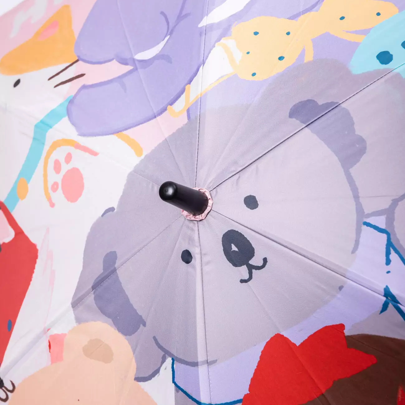 Основою парасолі є металевий стрижень, який забезпечує міцність і надійність під час користування. Ручка виготовлена з пластику, має зручну форму гака, що дозволяє дитині легко тримати парасолю в руці або підвішувати її. Конструкція зі сталевими спицями додає стійкості та допомагає утримувати купол у правильному положенні навіть під час сильного вітру.